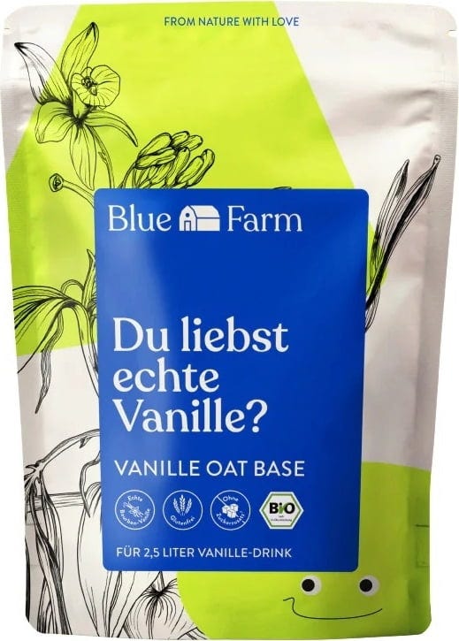 Hol dir jetzt die Vanille Oat Base von Blue Farm und genieße pflanzlichen Genuss mit dem vollen Geschmack von Bourbon-Vanille – einfach, lecker und nachhaltig!