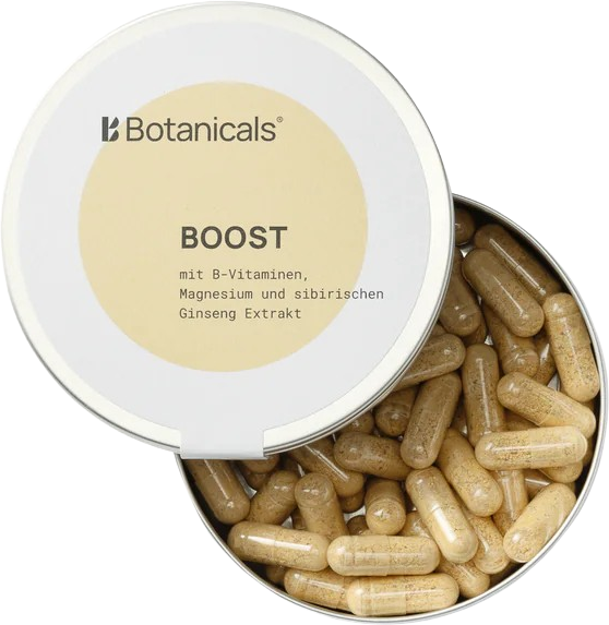 Boost Caps kombinieren B-Vitamine, Magnesium und sibirischen Ginseng in einer alltagstauglichen Rezeptur. Die Kapseln sind vegan, glutenfrei und laktosefrei.