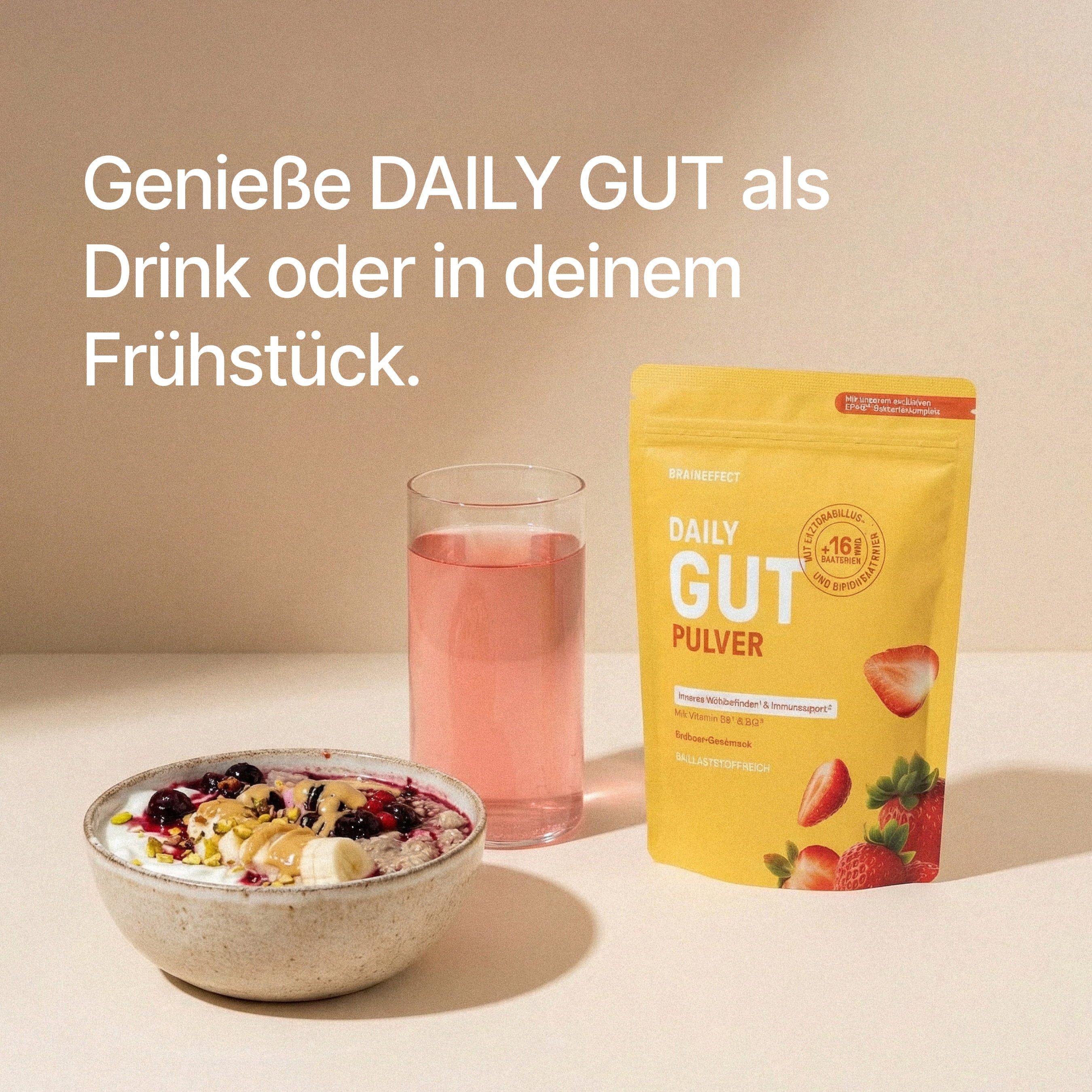 Wichtig: Aufgrund der enthaltenen Bakterien DAILY GUT nicht erhitzen!