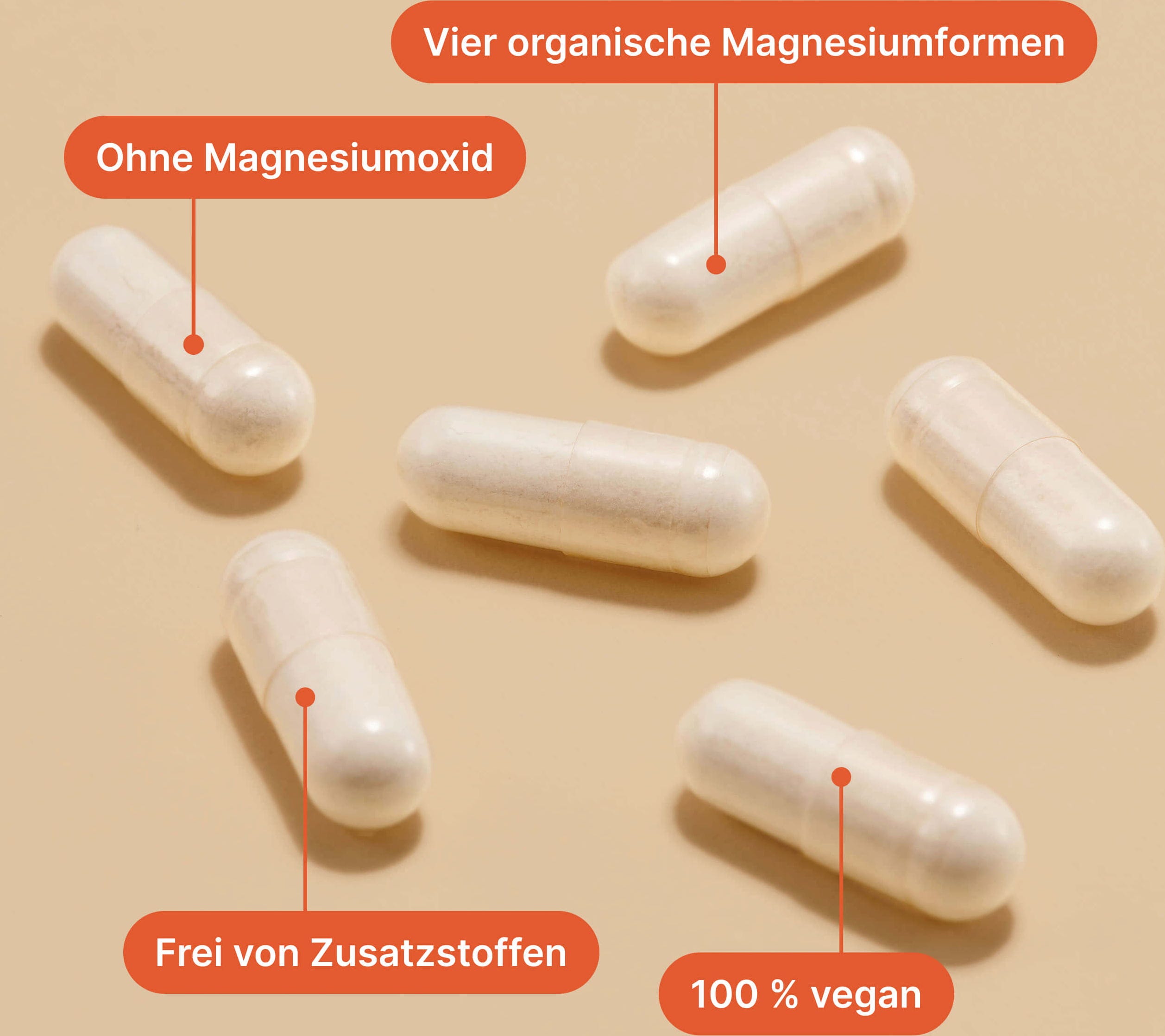 Die Braineffect Magnesium Komplex Kapseln bieten 4 verschiedene Magnesiumformen in einer Kapsel: