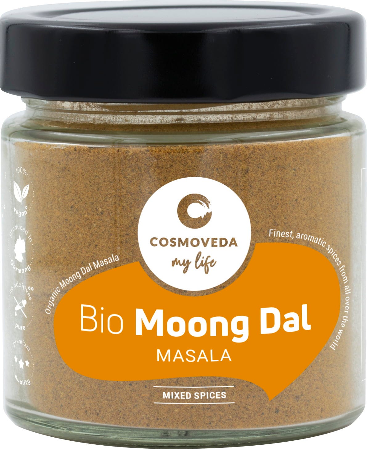 Bio Moong Dal Masala con Cosmoveda ist eine abgestimmte ayurvedische Mischung aus erlesenen Gewürzen für Moong Dal Gerichte.