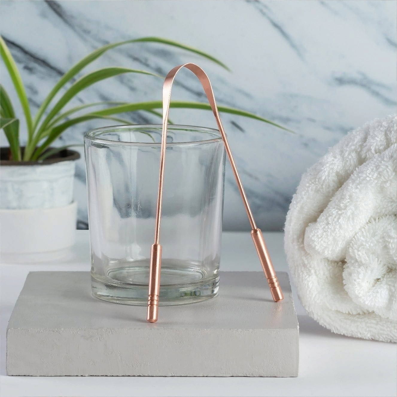 - Da Kupfer selbst antimikrobiell ist, genügt es, den Zungenreiniger nach täglichem Gebrauch unter fließendem Wasser abzuspülen.