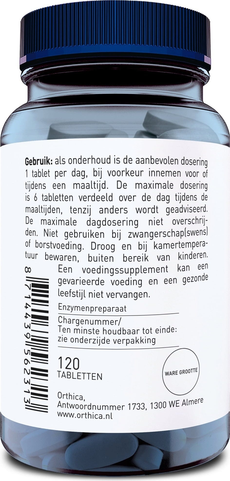 Der Enzym Complex von Orthica bietet dir eine gezielt zusammengestellte Auswahl an Enzymen in Tablettenform. Die Rezeptur kombiniert Enzyme pflanzlichen Ursprungs, wie Bromelain aus der Ananas und Papain aus der Papaya, mit weiteren Komponenten wie Amylase, Lipase und Protease.