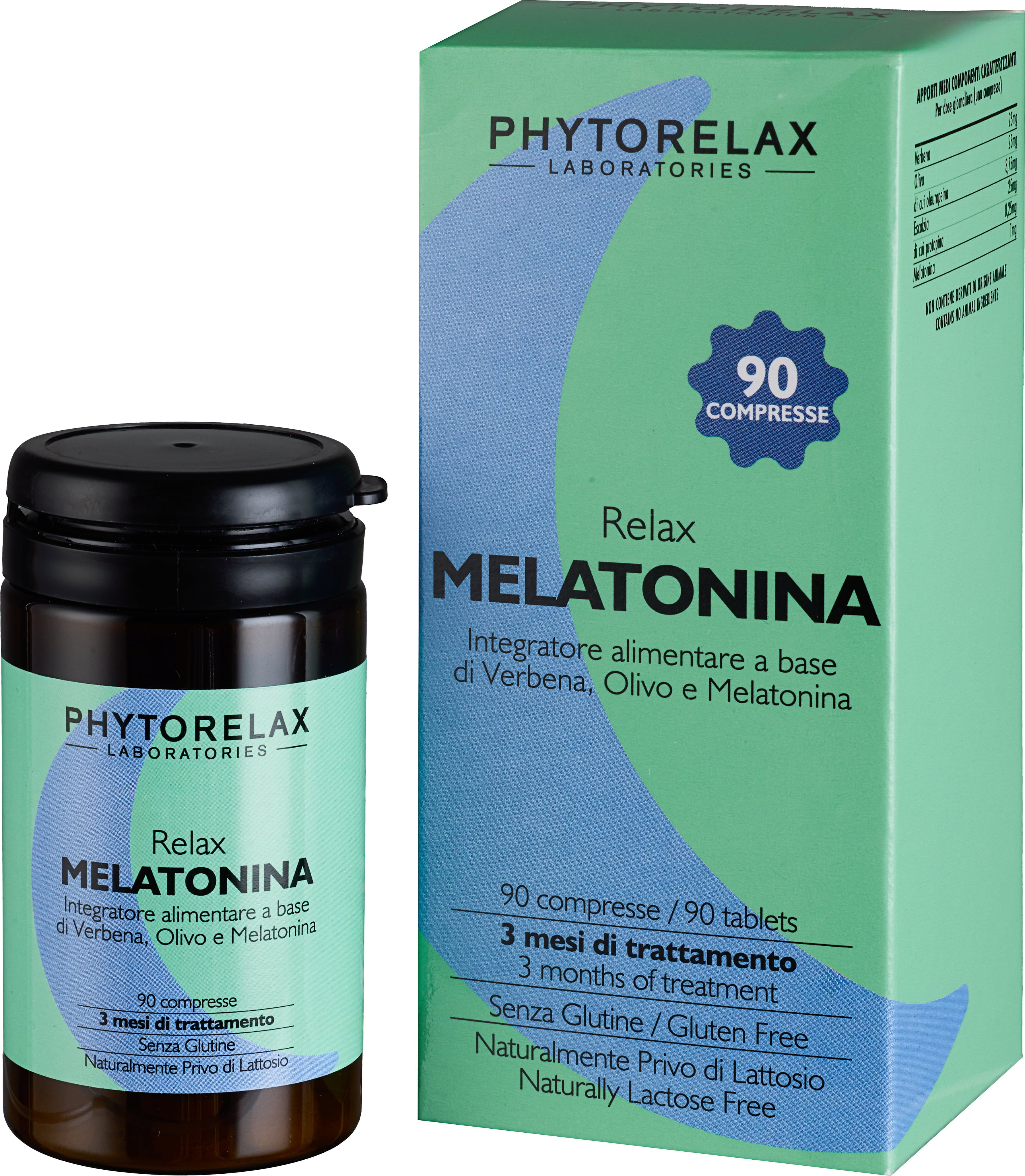 Phytorelax Relax Melatonina ist ein Nahrungsergänzungsmittel in praktischer Tablettenform, das auf Melatonin sowie ausgewählten Pflanzenextrakten wie Verbena (Eisenkraut), Olivenblatt und Kalifornischem Mohn basiert. Die klare Rezeptur kommt ohne unnötige Zusatzstoffe aus und ist gluten‑ und laktosefrei.