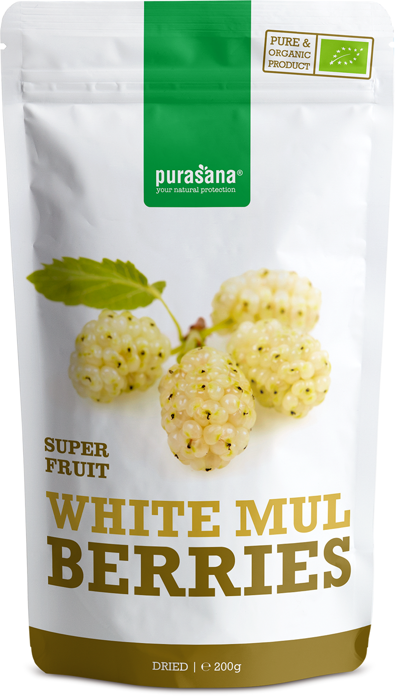 Die weiße Maulbeere ist eine Pflanze aus der Maulbeerfamilie und entstand in China. Ein weißer Maulbeerbaum kann bis zu 16 m Höhe wachsen. Die Maulbeere Frucht ist ähnlich wie eine kleine Himbeere oder Brombeere. Die weiße Maulbeere enthält verschiedene Vitamine und Mineralien.