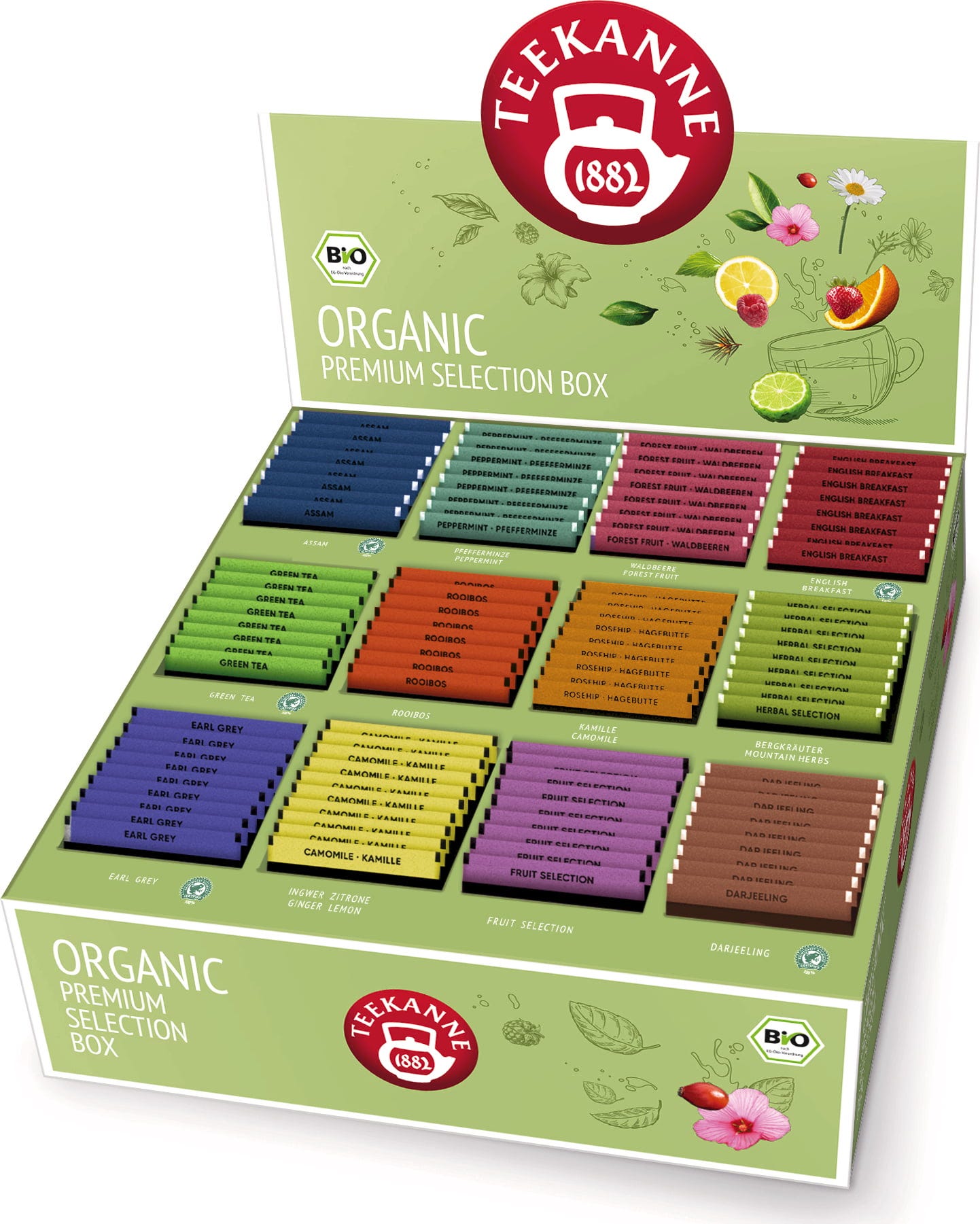 Entdecke deine Lieblingsteesorten in höchster Bio-Qualität mit der BIO Organic Premium Selection Box von Teekanne. Ideal für die Gastronomie oder passionierte Teetrinker:innen, die sich nicht auf eine Sorte festlegen wollen.