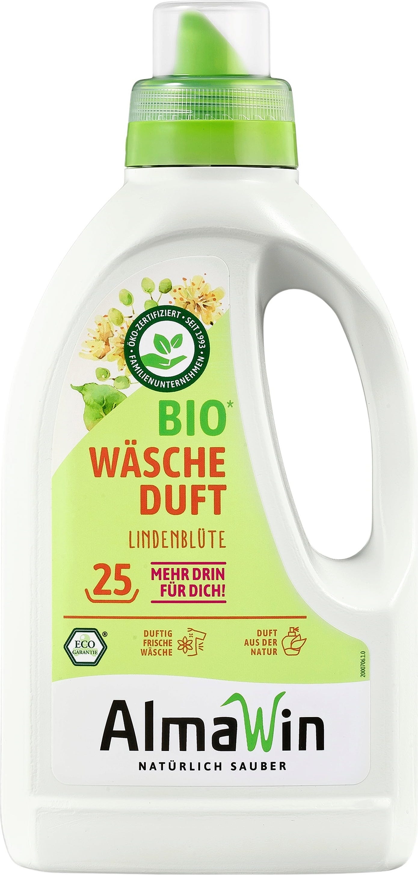 The laundry scent by AlmaWin provides a pleasant, delicate fragrance and gives the wash a touch of spring scent. It is dermatologically tested and free of synthetic fragrances and dyes.