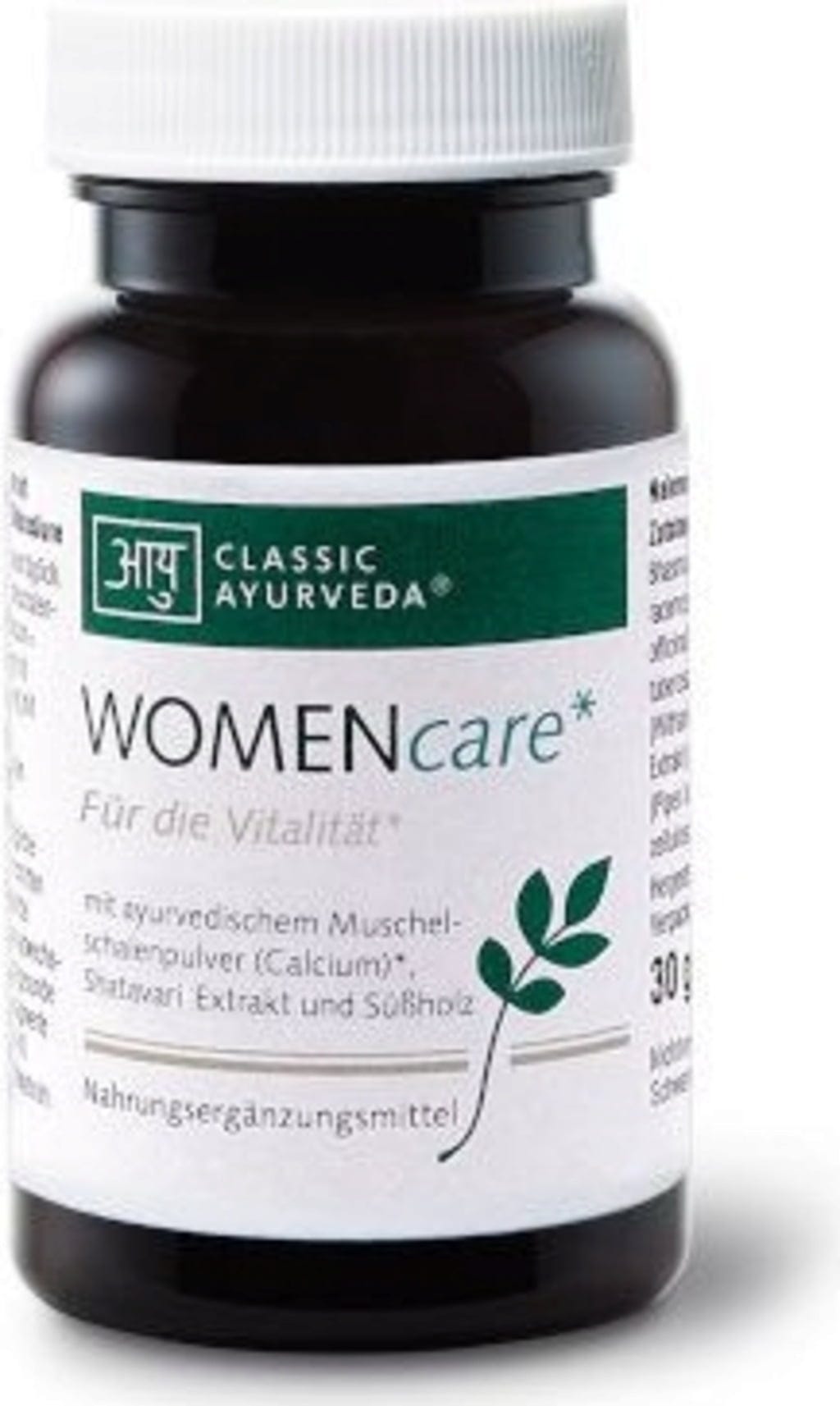 WOMENcare capsules by Classic Ayurveda combine mineral shell powder with a selection of traditional plant extracts. The formula is based on shatavari and vidari kanda, supplemented by liquorice, brahmi and ashwagandha. Fennel rounds off the composition for daily nutritional supplementation.