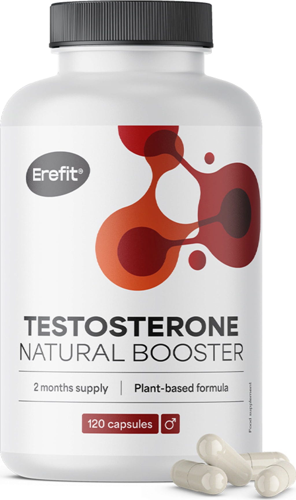 Testosterone Natural Booster by Erefit is a targeted nutrient complex specifically developed for men aged 30 years and over. At the heart of the formula is the essential trace element zinc, which is proven to contribute to the maintenance of normal testosterone levels in blood, as well as normal fertility and reproduction. The complex is further enhanced with Vitamin D3, which contributes to normal muscle function and plays a vital role in cell division. To provide a broad spectrum of botanical support, the formulation includes extracts of fenugreek, ashwagandha, maca, black pepper, and puncture vine (Tribulus terrestris). These provide a rich source of natural plant compounds, including saponins and withanolides.