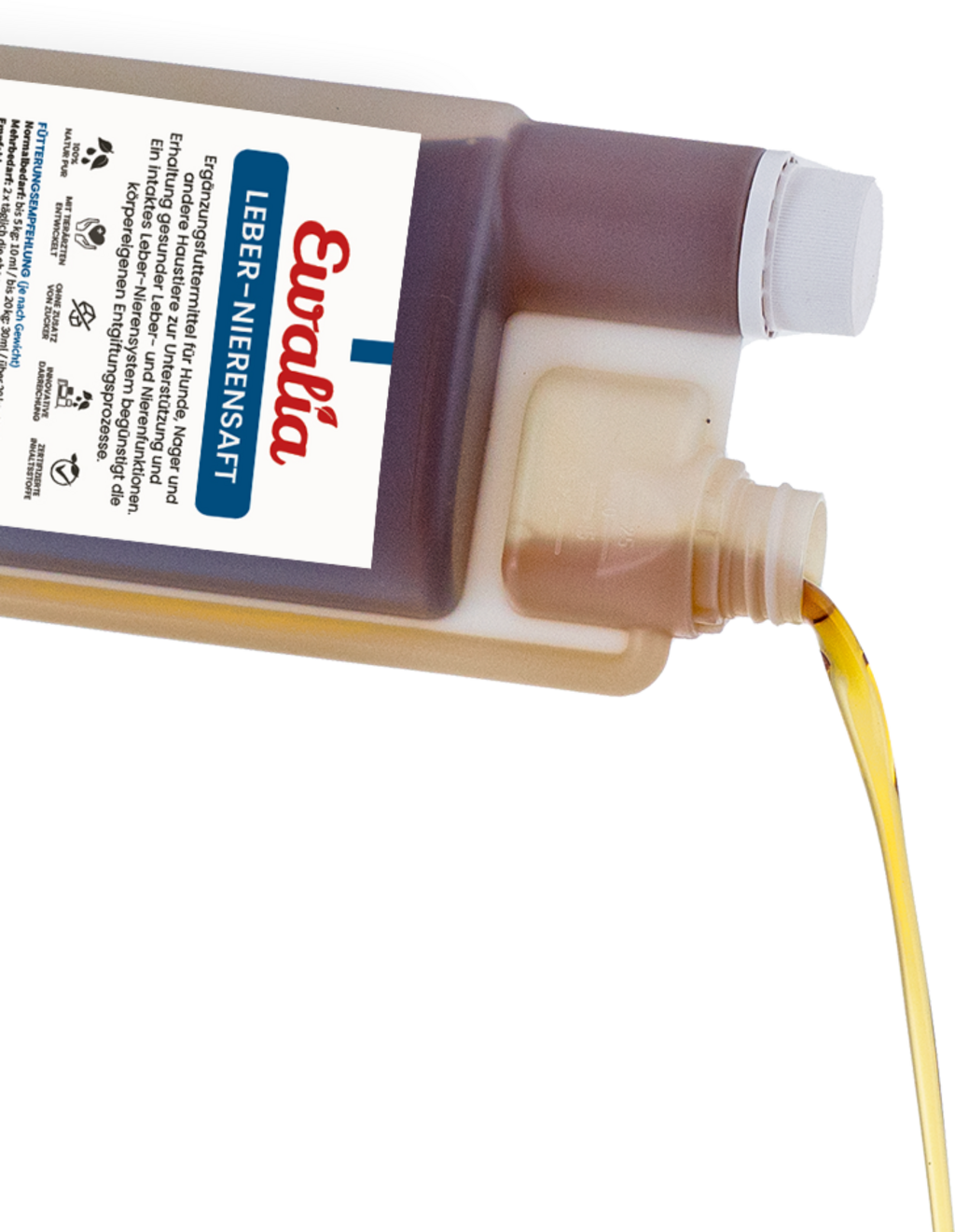 The liver-kidney juice supports the cleansing and detoxification processes of the liver and kidney system for dogs, rodents and other pets. Regular use can have a positive effect on their fur and skin.