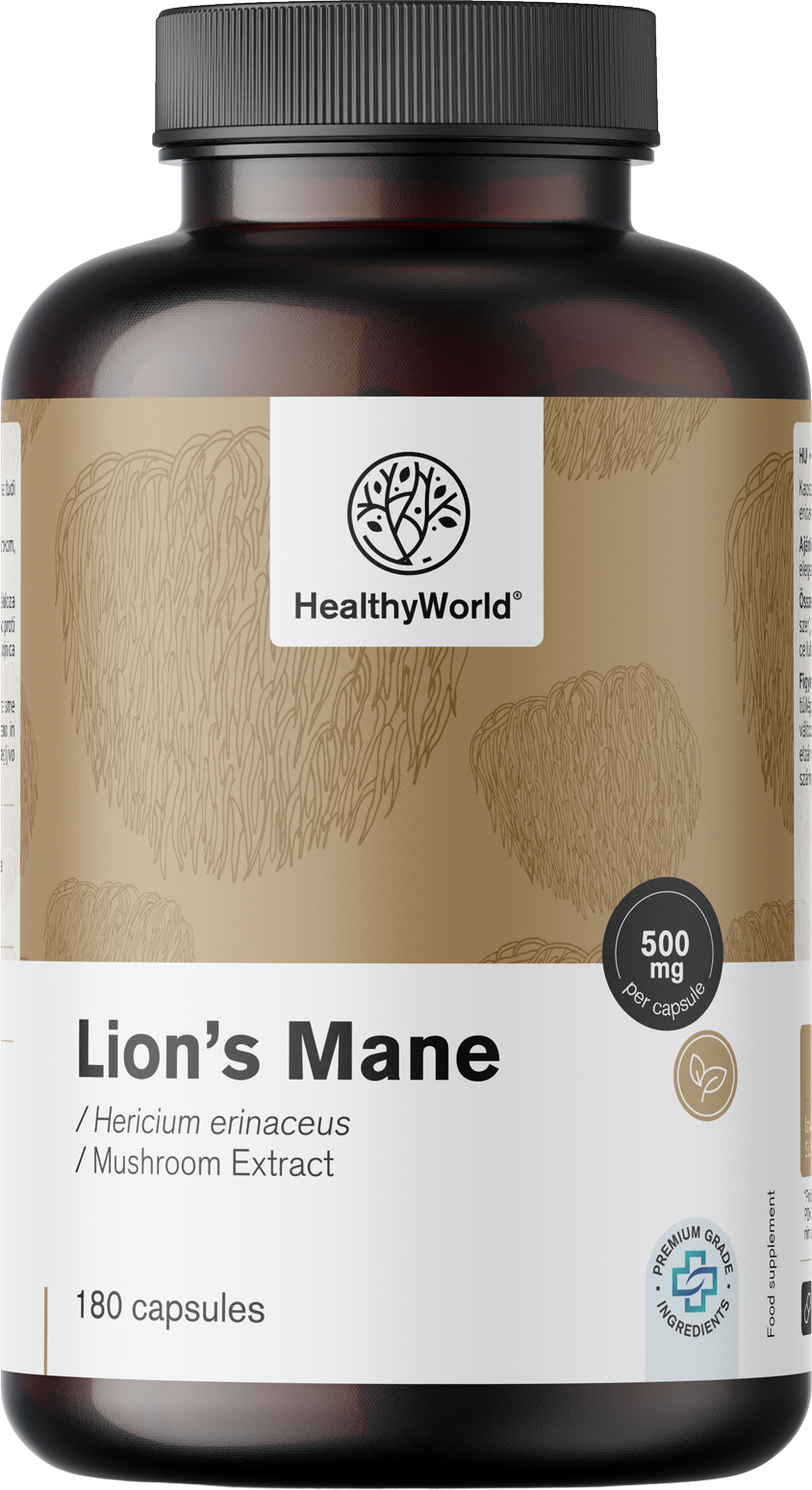 Lion's Mane 500 mg is formulated with natural lion's mane mushroom. It owes its name to its distinctive appearance. The versatile properties of the extract of this mushroom have been known and valued in China for centuries.