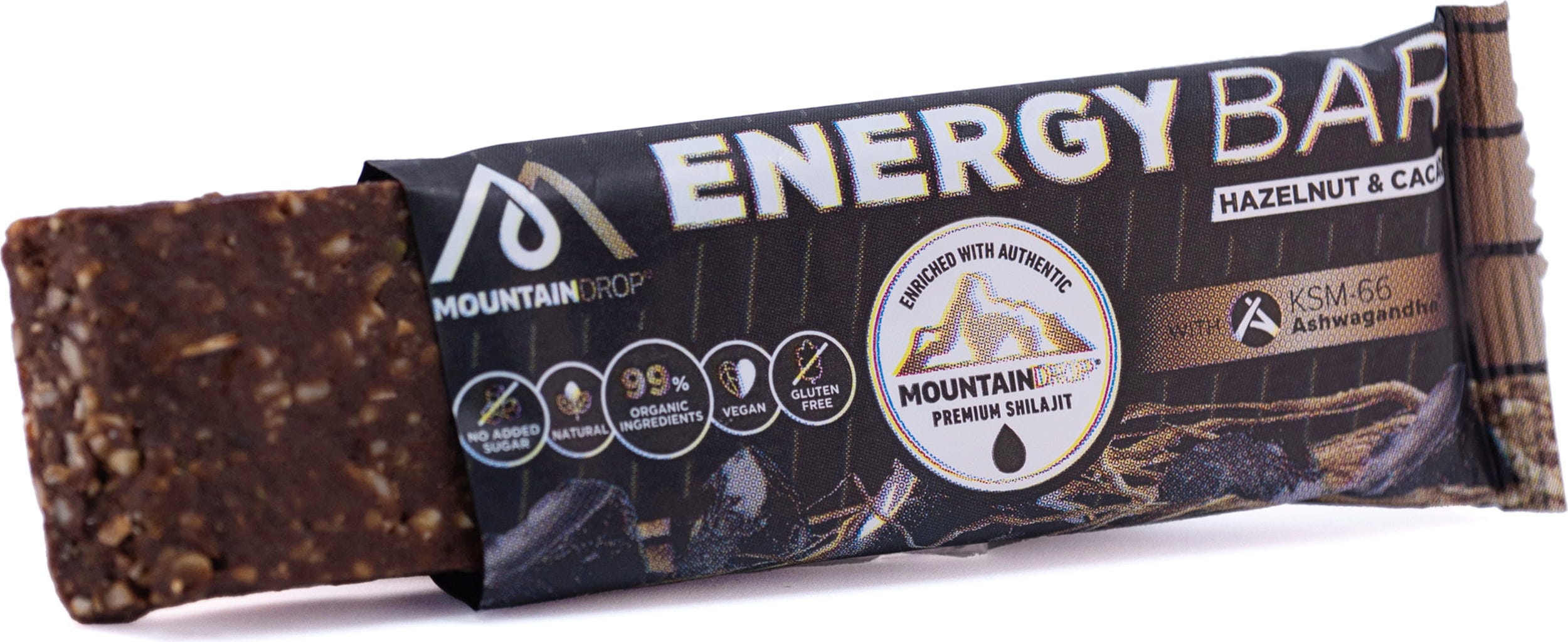 The Mountaindrop Energy Bar is a nutrient-dense snack that combines dates, nuts, and seeds with mineral-rich premium shilajit and Ashwagandha KSM-66® extract. Using only natural honey as a binder, this bar is made entirely without artificial additives or refined sugars. The combination of dried fruits and seeds provides a satisfying, chewy texture. Produced in Slovenia, it offers a convenient way to incorporate functional botanicals into an active lifestyle.