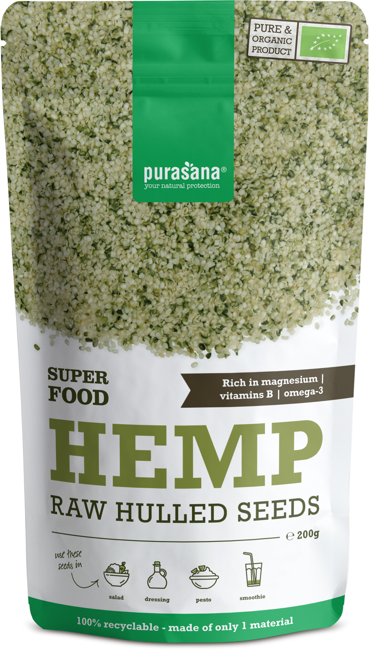 Purasana Shelled Organic Hemp Seeds, 200 g