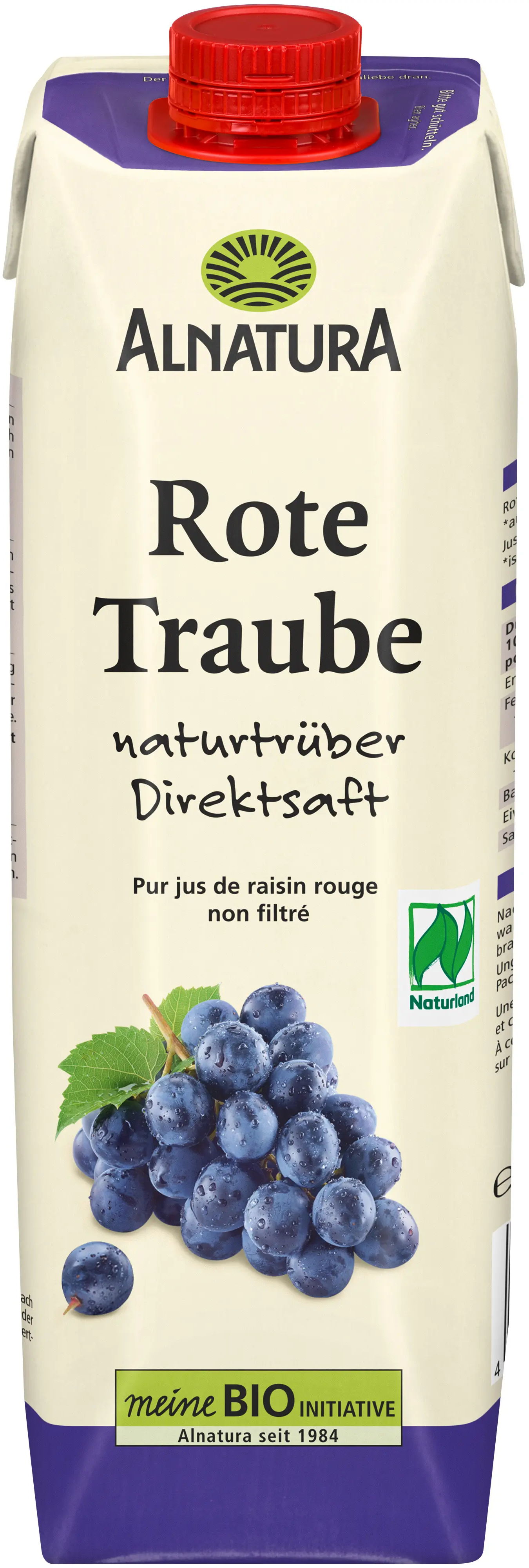Ce jus biologique naturellement trouble d'Alnatura est fabriqué à partir de raisins rouges italiens de qualité biologique, cultivés selon les directives de Naturland. Excellent aussi bien pur que dilué, il n'est pas issu de jus concentré et n'est pas non plus filtré, c'est pourquoi il a un aspect trouble.