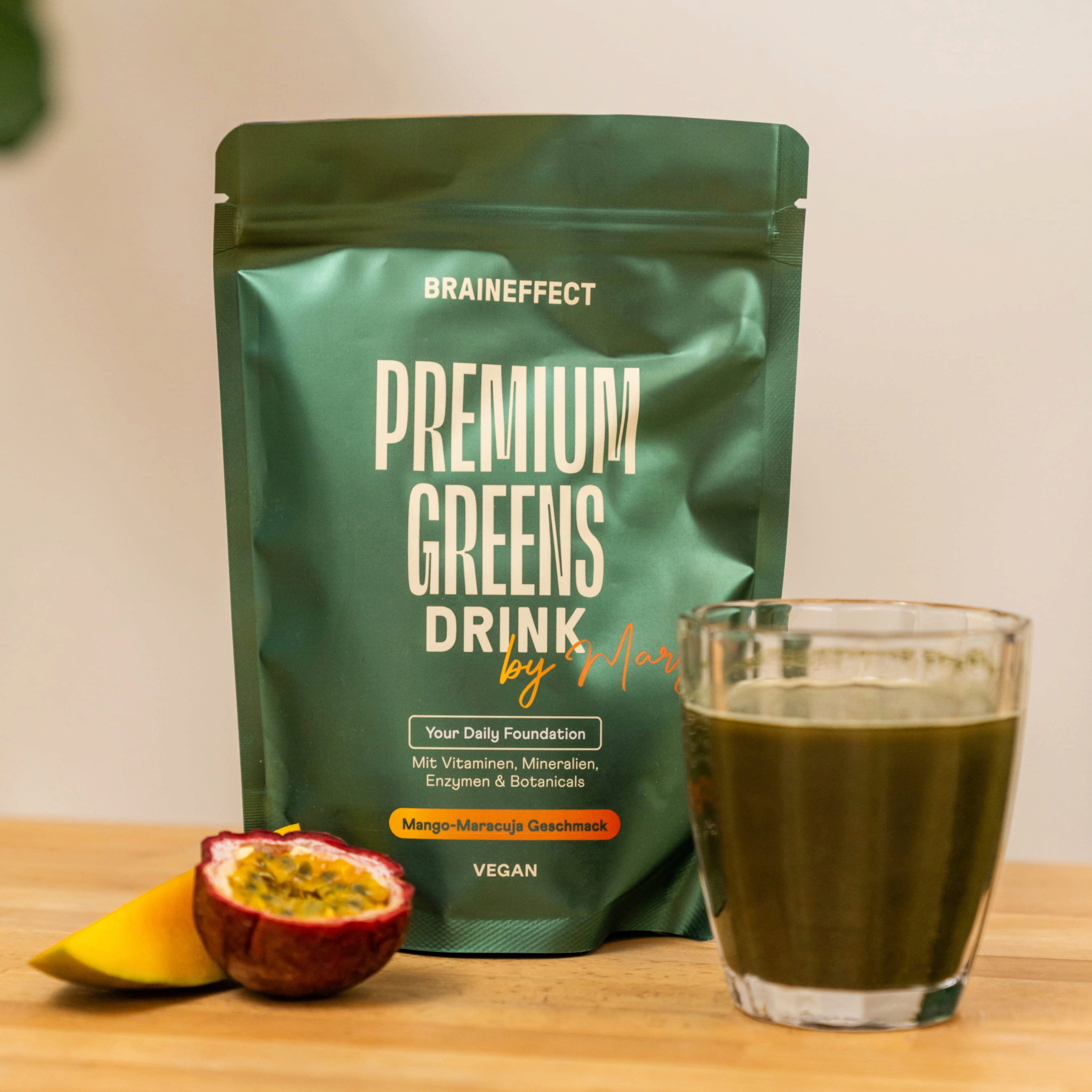 BRAINEFFECT Premium Greens, Mangue - Fruits de la passion (270 g)