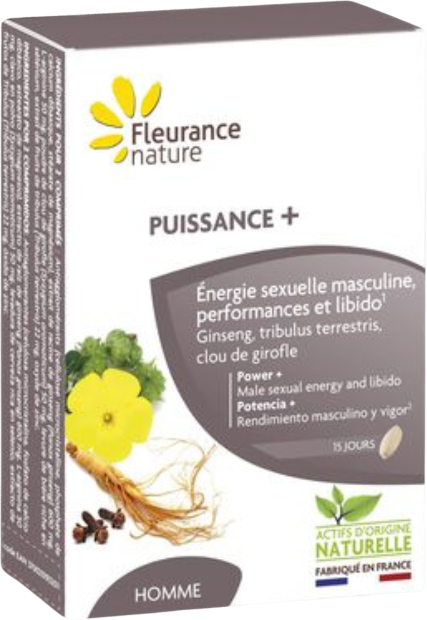 Power + associe des extraits de plantes à des oligo-éléments essentiels. La formule contient du ginseng, du Tribulus Terrestris et du clou de girofle, reconnus en phytothérapie pour leurs propriétés. Le produit apporte également du zinc et du sélénium. La composition est complétée par de la L-arginine issue du tapioca. Les comprimés offrent un apport ciblé en nutriments, adapté à la physiologie masculine.