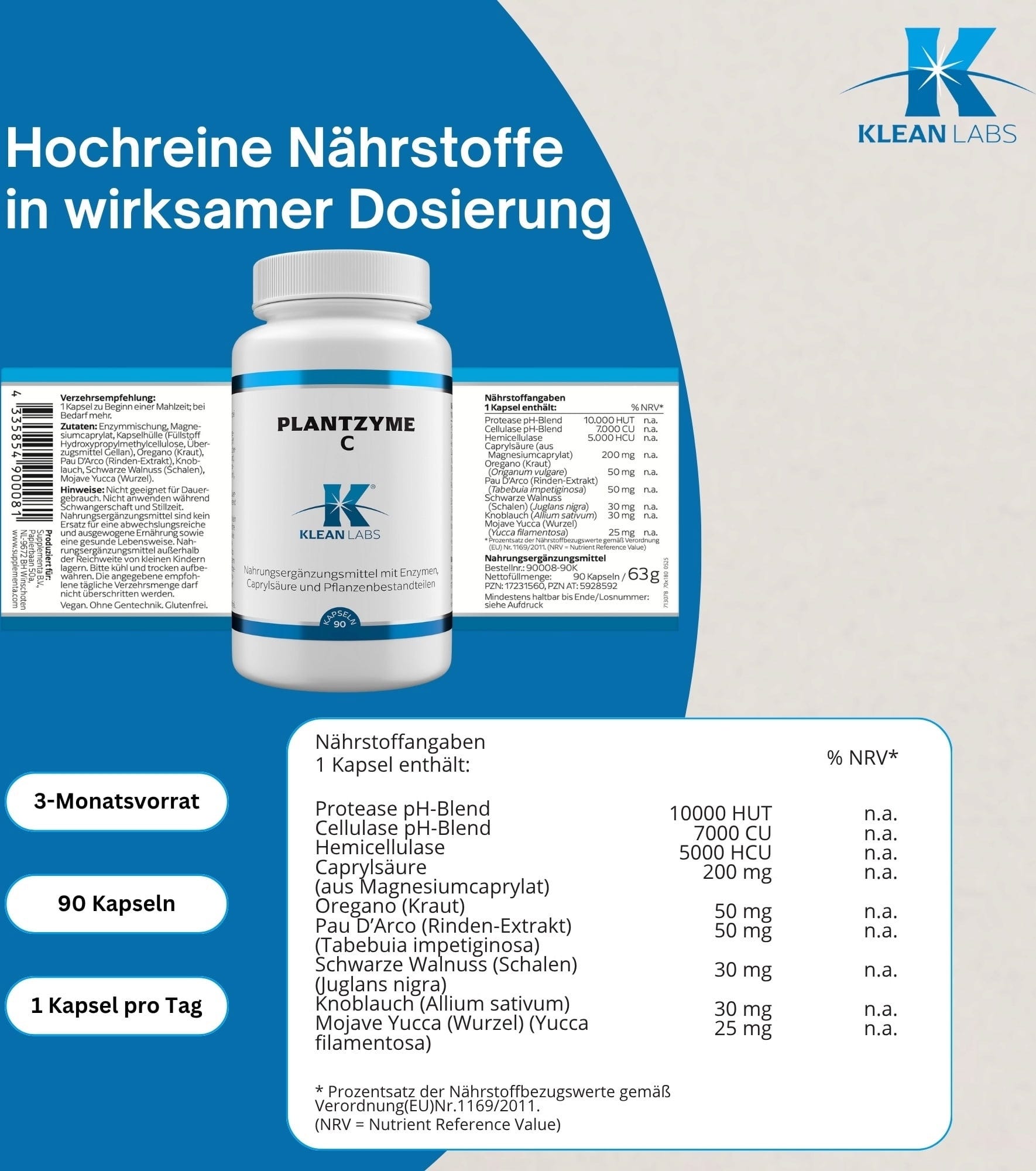 KLEAN LABS PlantZyme C, 90 gélules