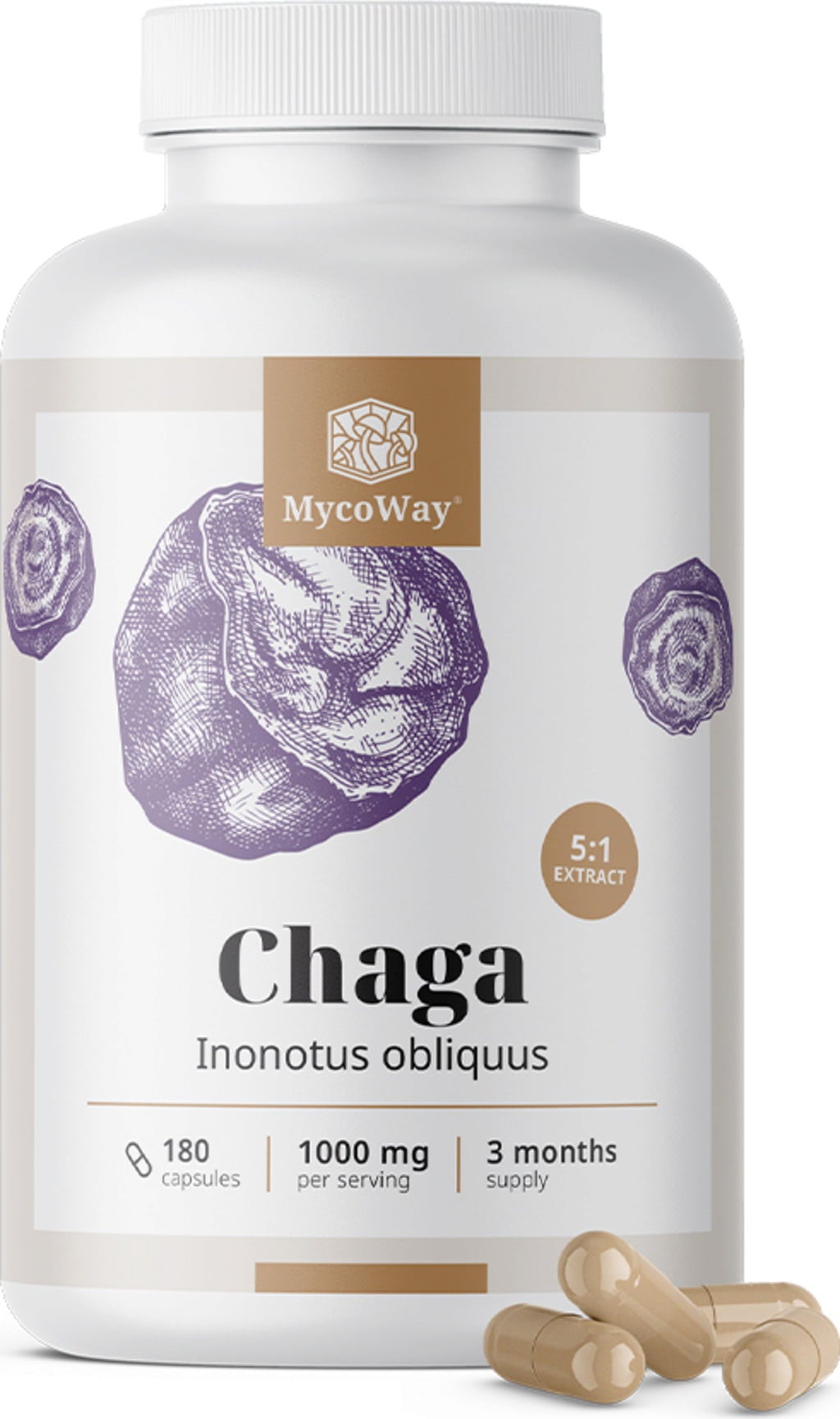 MycoWay Chaga 1000 mg - Extrait 5:1, 180 gélules