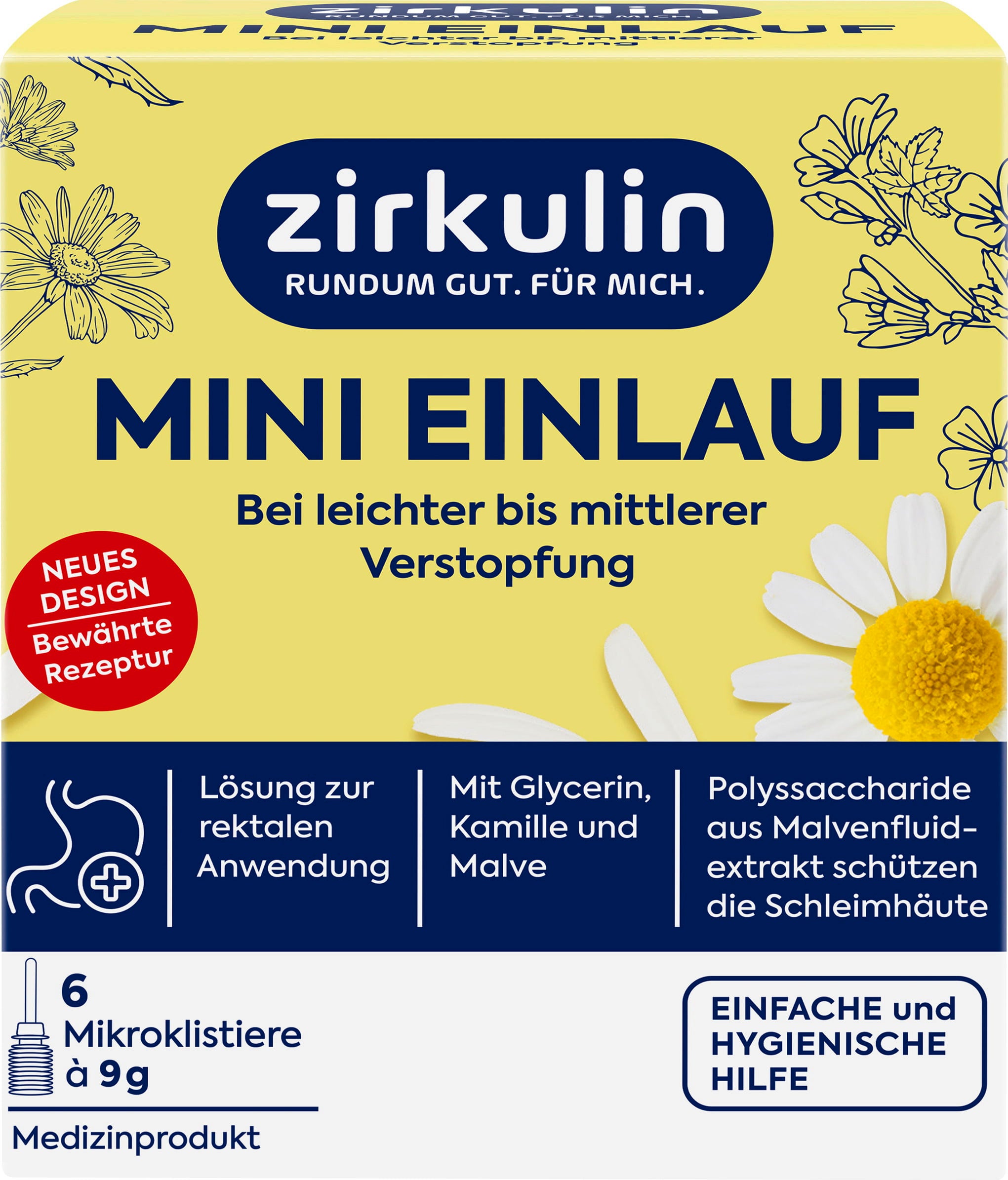 Cette solution pour micro-lavement de zirkulin est particulièrement simple et hygiénique à utiliser. La glycérine possède des propriétés émollientes et hydratantes, tandis que la camomille et la mauve contribuent à protéger et à prendre soin des peaux sensibles. Le produit convient également à un usage régulier.
