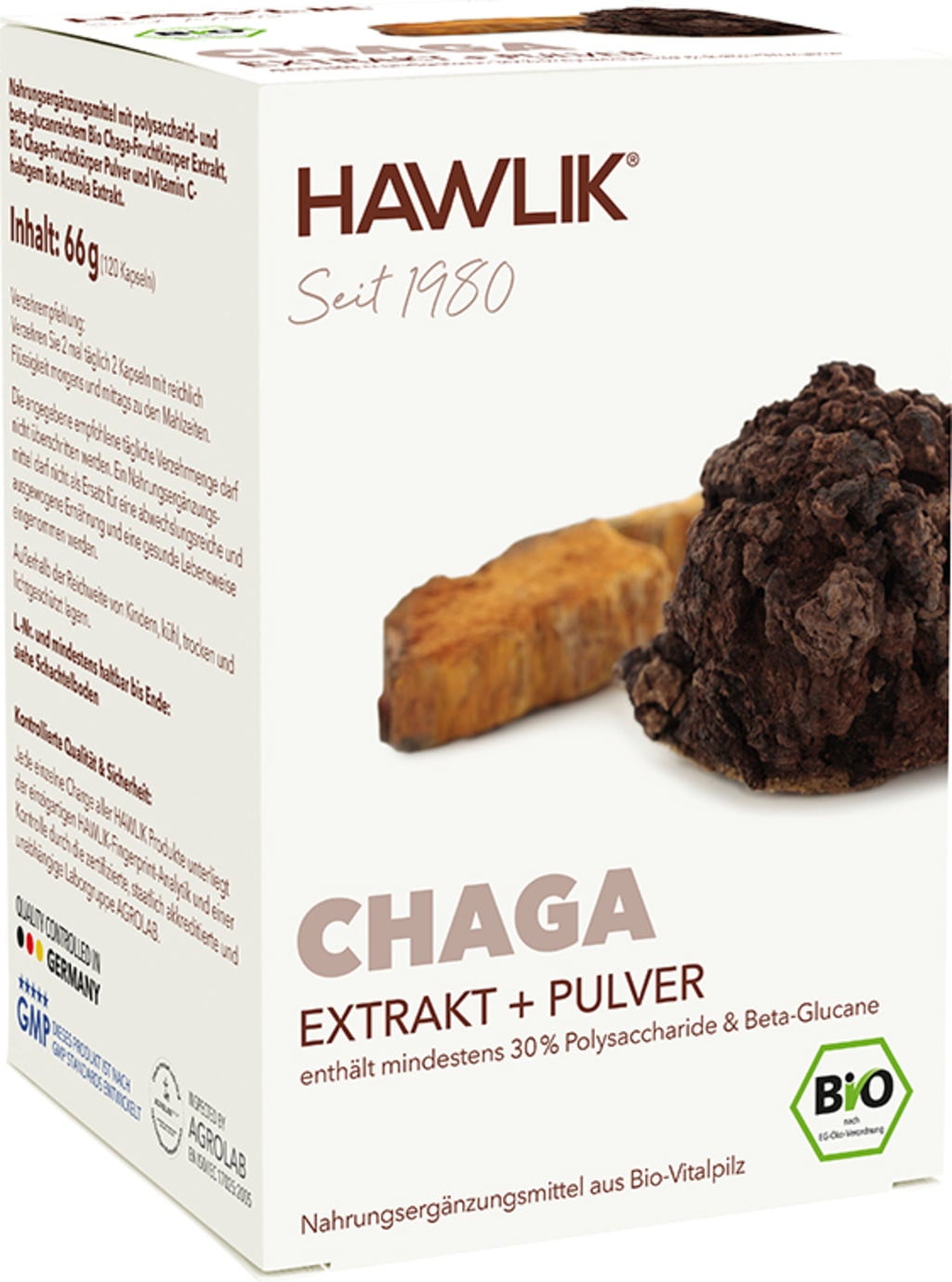 Hawlik Chaga Bio - Estratto + Polvere, 120 capsule