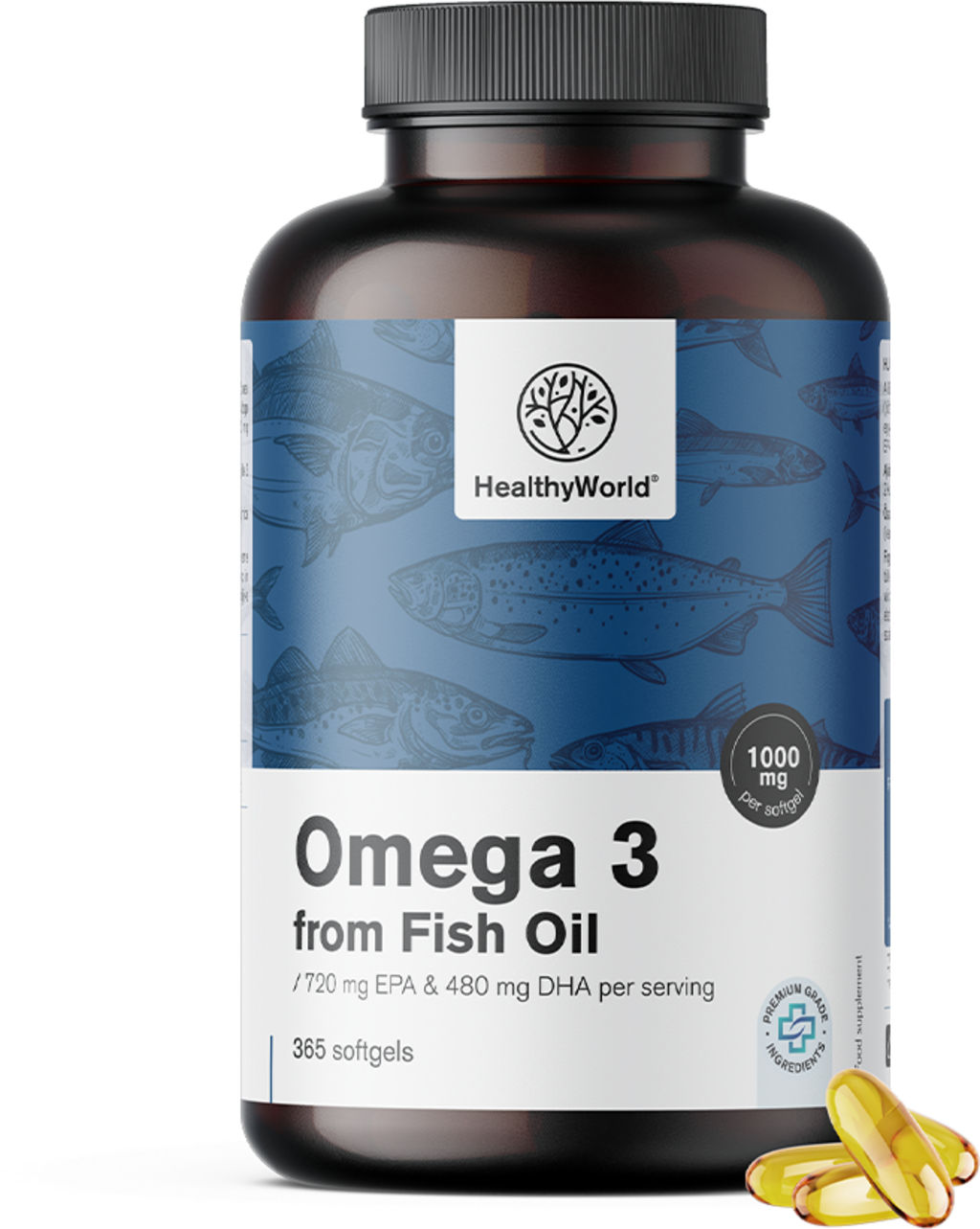 Queste capsule molli sono a base di olio di pesce di alta qualità e forniscono 1000 mg di olio di pesce per dose giornaliera consigliata, inclusi gli acidi grassi omega-3 a catena lunga EPA (acido eicosapentaenoico) e DHA (acido docosaesaenoico). EPA e DHA sono acidi grassi polinsaturi che l'organismo non è in grado di produrre autonomamente e devono quindi essere assunti attraverso l'alimentazione. EPA e DHA contribuiscono alla normale funzione cardiaca.