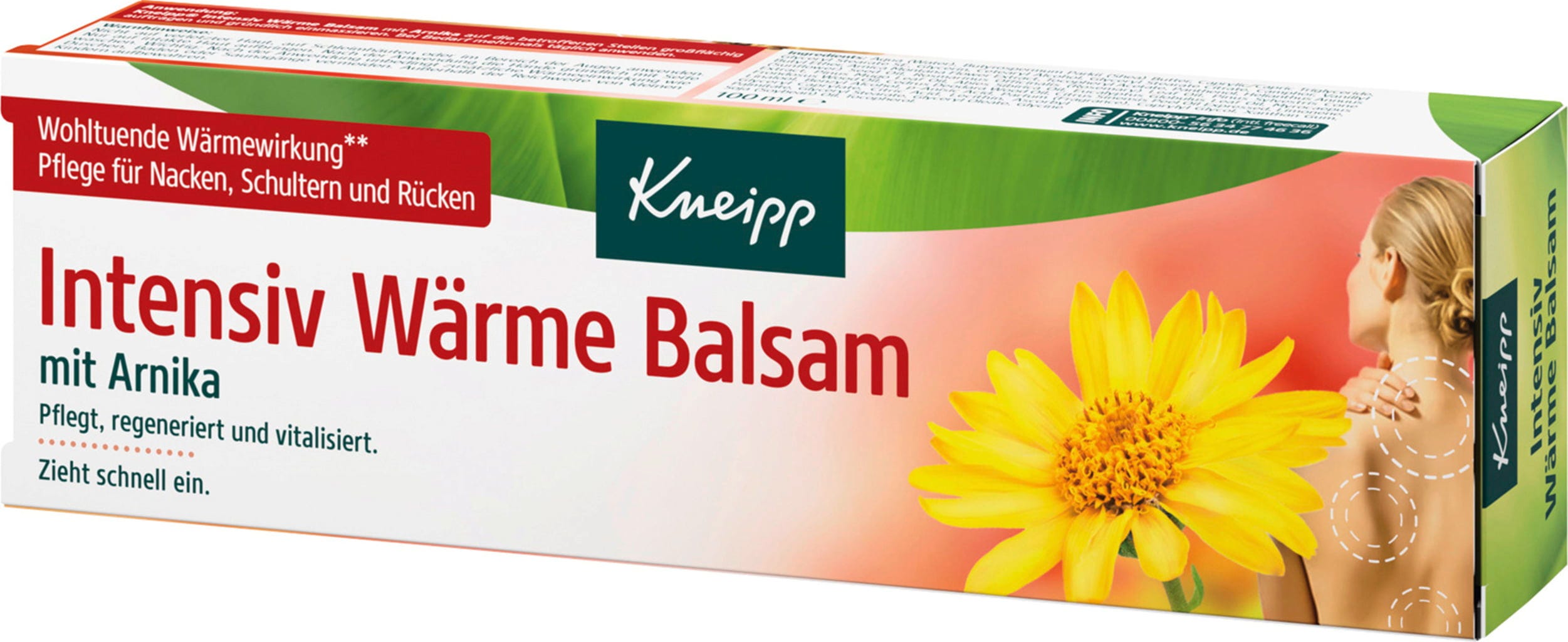 Il balsamo riscaldante all'arnica di Kneipp è ideale per le aree di collo, spalle e schiena. La formulazione vegana del balsamo si assorbe rapidamente e lascia una piacevole sensazione di calore sulla pelle.