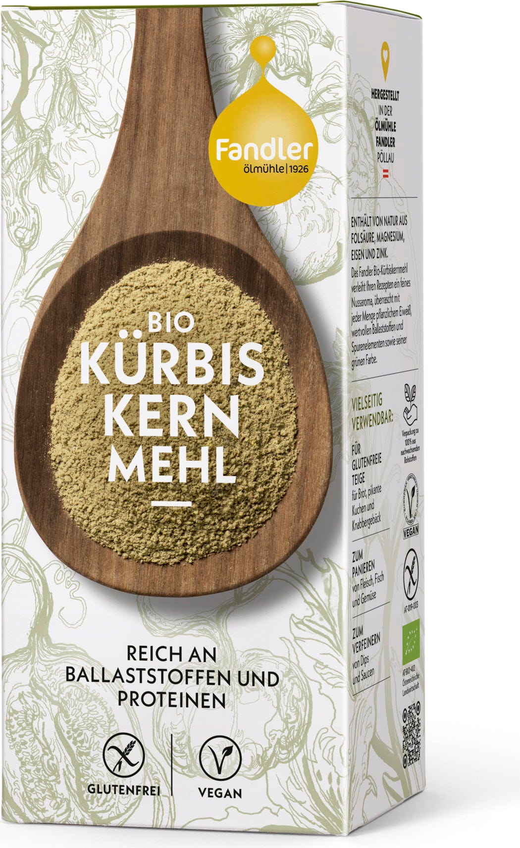La farina di semi di zucca, dal caratteristico colore verdastro, sorprende per il suo delizioso gusto ed è inoltre ricca di proteine vegetali e fibre. È un'ottima alternativa senza glutine al pangrattato. Specialmente indicata per dare lo sprint giusto a piatti veg.