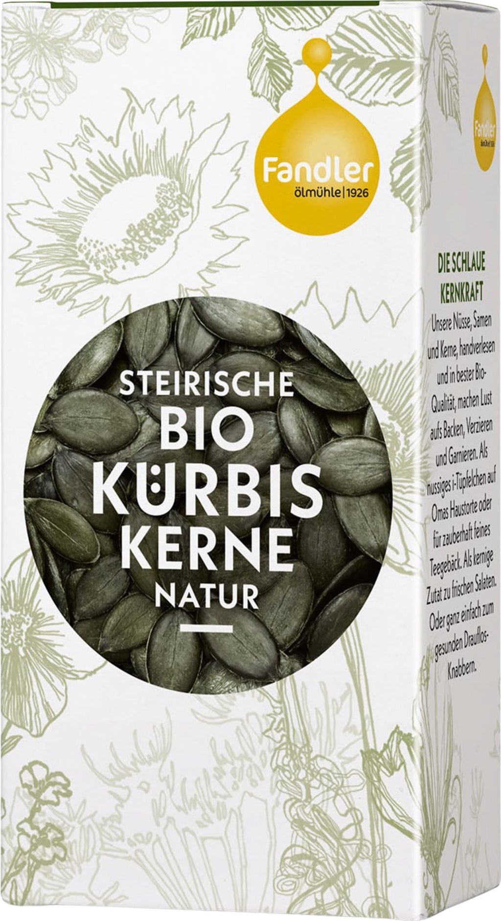 Questi semi di zucca al naturale sono estremamente versatili. Sono perfetti come alternativa sana per uno spuntino, come decorazione per pane, dolci e insalate gustose. Deliziosi anche per i piatti a base di carne della tradizione stiriana, i semi di zucca, leggermente tostati, danno il meglio di sé in combinazione con la valeriana, le patate e croccanti cubetti di pancetta.