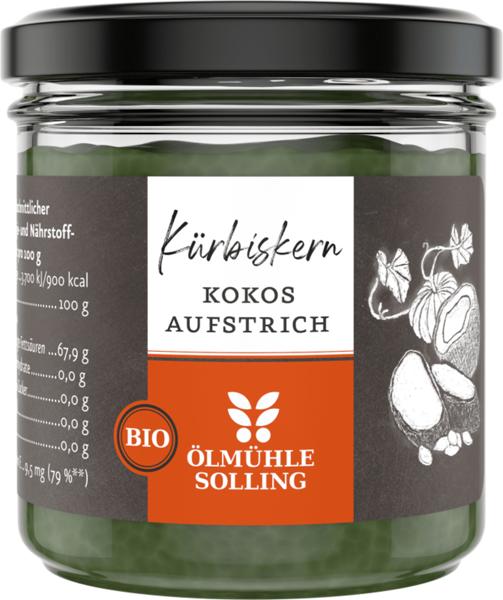 Questa crema spalmabile puramente vegetale, a base di olio di semi di zucca spremuto a freddo, semi di zucca tostati e olio di cocco, è l'alternativa ideale al burro o alla margarina tradizionali. Può essere gustata da sola o con altri ingredienti, come formaggi o salumi. Ricca di acidi grassi, questa crema spalmabile è l'aggiunta perfetta a una dieta equilibrata.