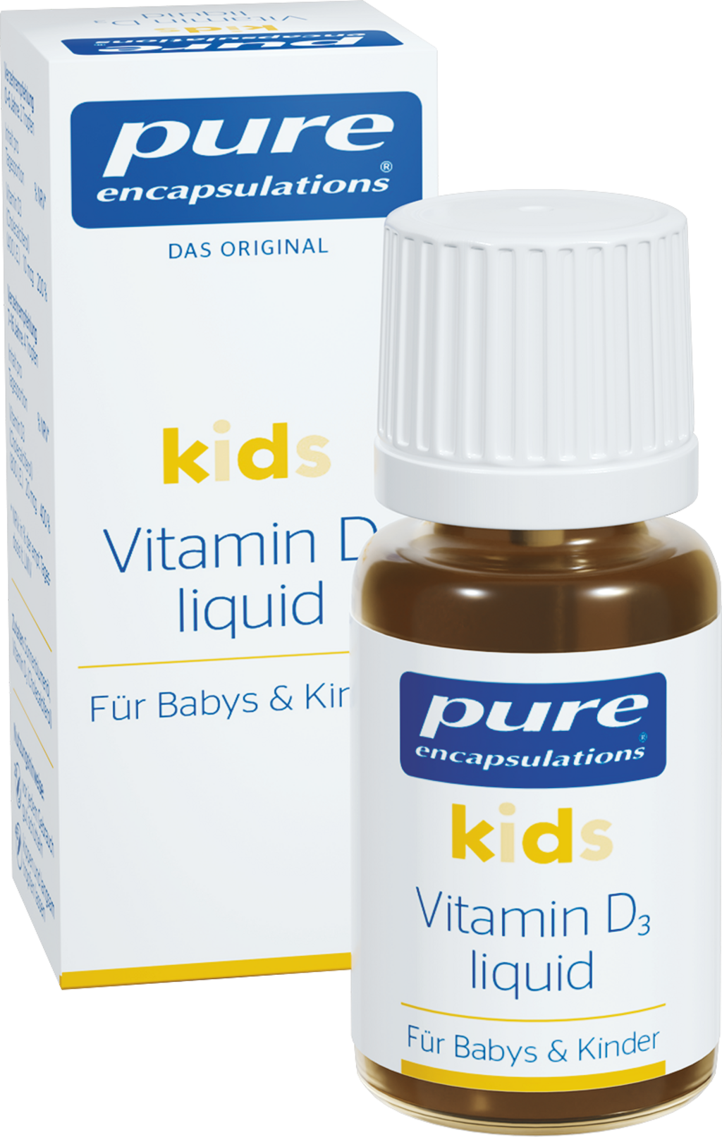 Kids - Vitamina D3 liquida di Pure Encapsulations® contiene vitamina D disciolta in olio di girasole naturale ed è formulato appositamente per neonati, bambini e ragazzi. La vitamina D contribuisce alla normale crescita e allo sviluppo delle ossa, al mantenimento di denti normali e al normale funzionamento del sistema immunitario. Il pratico contagocce consente un dosaggio facile e flessibile, dall’età neonatale fino all’adolescenza.