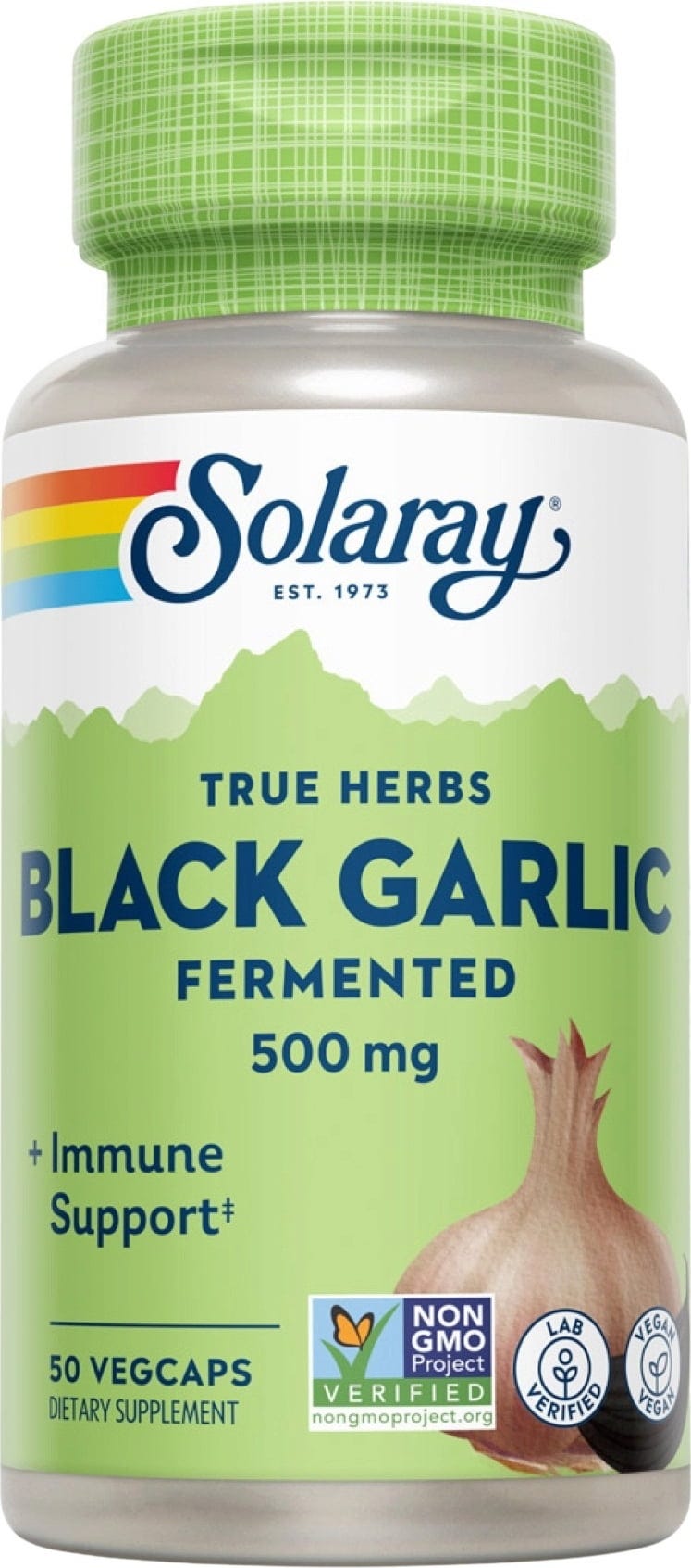 L'aglio nero non è altro che comune aglio bianco fermentato. Esso si ottiene lasciandolo in un ambiente a temperature e umidità controllate per circa un mese, e poi lasciato ossidare per altri 45 giorni circa. In Asia e negli Stati Uniti, questo tipo di aglio è molto popolare nelle cucine di lusso per via del suo sapore dolce, che è paragonabile all'aceto balsamico. Grazie alla speciale fermentazione realizzata da Solaray, l'aglio è ancora più durevole e pregiato.